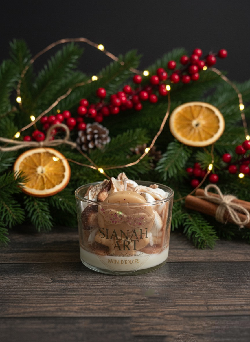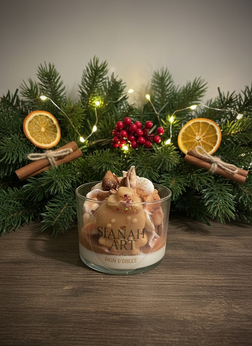 Plongez dans l’ambiance réconfortante des fêtes avec ma bougie Pain d’Épice, un parfum emblématique de Noël qui évoque les gourmandises sorties du four et les moments chaleureux passés en famille ✨